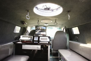 “除了功能上的特殊性,這輛車還裝備了很多高科技裝備!”張國強介紹說,除駕駛員外,這輛全封閉的車子可以搭載12名突擊隊員,但這樣一來,換氣就成了問題。所以,在該車中部天窗附近,還增設了一處特制的換氣扇,保證了車內充足的氧氣量;其次,該車還配備了特制的逆變電源,就算是車子在停止狀態(tài),通過這種特殊的設備,12伏的電壓也能在瞬間轉變?yōu)?20伏電壓,以保證車內電腦、監(jiān)控屏幕等電子設備正常工作。