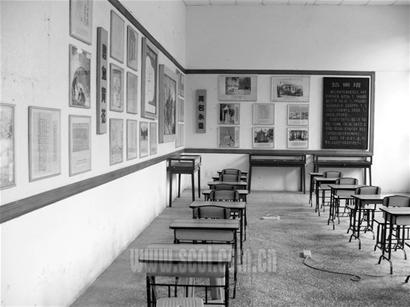 26日上午10時,記者來到內江市人民公園。綠樹掩映下,漢白玉雕刻而成的喻培倫大將軍紀念碑格外醒目。紀念碑身后,矗立著的一座古樸小樓就是喻培倫大將軍紀念館。在紀念館一側小門處,赫然掛有題名為“內江市電子琴手風琴培訓學!钡呐谱印<o念館大廳正中,大將軍半身塑像周圍,圍立著電子琴學校的廣告牌、獲獎獎牌,而在大廳兩側陳列廳正中,則安放著成行成列的單人桌椅,整個陳列廳布局已與普通教室沒有任何差異。