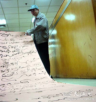 殘疾書法家獨創(chuàng)“飛白”體 書寫208米長卷(圖)