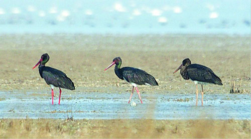 又到一年一度候鳥遷徙季節(jié)。西洞庭湖自然保護區(qū)今天傳來消息,11月20日,西洞庭湖自然保護區(qū)工作人員一行6人,在進行冬候鳥監(jiān)測巡護調(diào)查時,在西洞庭湖半邊湖中心地段驚喜地發(fā)現(xiàn)黑鸛23只,白枕鶴5只,東方白鸛3只,小天鵝16只,豆雁3只。