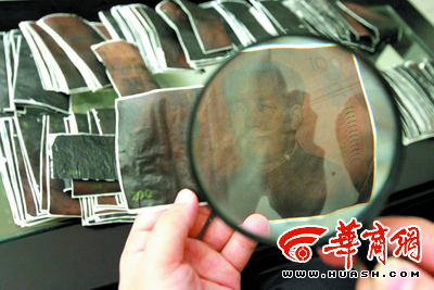 昨日下午,劉先生將粘貼好的“錢灰”送到人民銀行西安分行貨幣金銀處。暢繼達說:“我從事貨幣工作20余年,像老劉這樣將現(xiàn)金燒得如此嚴(yán)重,數(shù)額之大還是第一次見到。”