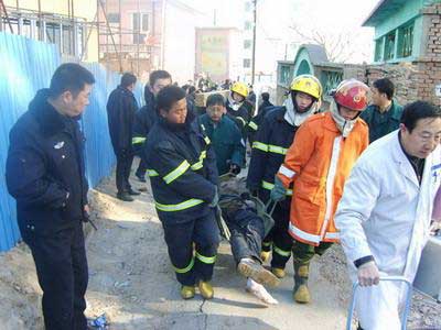 然后,消防隊員馬上對現場的土層和混凝土塊進行清理。當發現被埋較深的兩名工人后,經檢查,一人已經死亡,另一人仍有生還希望。