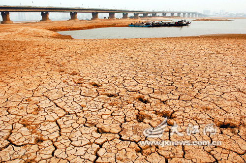 江西鄱陽湖水位持續走低 跌破歷史最低記錄(圖)