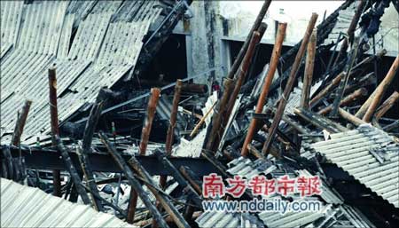 昨日上午11時(shí)15分,增城市新塘鎮(zhèn)大敦村偉強(qiáng)織廠發(fā)生坍塌事故,1700平方米的廠房屋頂由東向西在不到10秒的時(shí)間內(nèi)全部塌下。廠內(nèi)當(dāng)時(shí)有18名工人在上班,石棉瓦、鐵皮連同鋼材、木梁朝他們砸來。據(jù)官方統(tǒng)計(jì),事故造成1人死亡兩人輕傷。但記者從醫(yī)院了解到,10人送院觀察,截至昨晚7時(shí)30分,仍有7人留醫(yī)觀察。據(jù)調(diào)查,11月初,工廠老板曾在車間加裝了石膏天花。