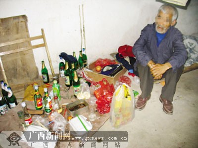 該男子就住在小賣部旁邊的一矮小瓦房內(nèi)。記者在門前看見,屋內(nèi)的燈光非常昏暗,屋內(nèi)一角擺滿了啤酒瓶和白酒瓶等,其中一名白發(fā)老者正坐在一張床上,數(shù)著散落在地上的一堆零錢。不久,燒傷男子來到小賣部,買了3瓶啤酒。記者詢問3人來自何處,但3人都沒有回答。