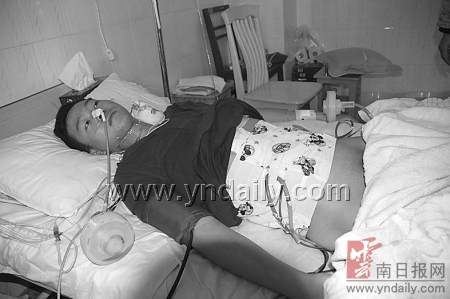 據主治醫生張新有介紹,病人剛送醫院時,駱文龍已經有了休克癥狀。手術過程中,臨滄市第一人民醫院也派出專家組往鎮康趕,由于病人失血過多,一度出現血漿短缺,等到市里專家組到了以后,馬上對病人補充了血漿,手術直到第二天上午才做完。張醫生說,手術后發現,子彈從駱文龍右肋下穿入,從右腰側出來,他的肝右翼、膽囊底、胃竇部前后壁、十二指腸水平部都出現破裂。手術以后主要是防止他的十二指腸修補處發炎漏液癥狀。(劉自學 攝影報道)