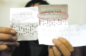 “我當然不同意,我選的500萬元中獎號他們沒有給我打印上,我懷疑投注站在我的彩票上做了手腳。隨后我又找省福彩中心。福彩中心工作人員說,電腦上的存根顯示,我選的兩個號碼并不是我的手寫號碼,所以,不會滿足我提出的要求。”