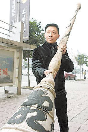 男子欲為巨型毛筆申報(bào)吉尼斯:筆長3.5米重80斤