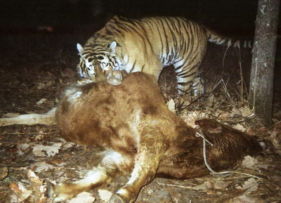 就此事,記者咨詢了從事東北虎保護(hù)工作多年的專家李志興。他說,一般情況下,東北虎一次只吃一頭牲畜,并且不會留在一個并不安全的地方這么久,這有點不符合東北虎的習(xí)性,但也有一種解釋就是東北虎咬死羊后,別的羊的騷動影響了它進(jìn)食的興致,所以它一怒之下就把騷擾它的羊都咬死、嚇蒙,以換來就餐環(huán)境的安靜。