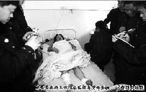 而在另外一間病房內,鄖縣民工肖本憲氣憤地說:“為啥打個工,就這么難?”據醫護人員介紹,肖本憲昏迷了兩天兩夜,前日才蘇醒過來。肖本憲頭部被砍傷,縫了9針,身上多處骨折,很可能落下終身殘疾!八麄円娙司涂,不僅傷人,還砸壞我們的東西!”肖本憲講到悲憤處,掙扎著握緊了左拳。在他身旁的妻子則暗自垂淚,責怪他為何跑到千里之外的山西來打工,還差點搭上一條命。