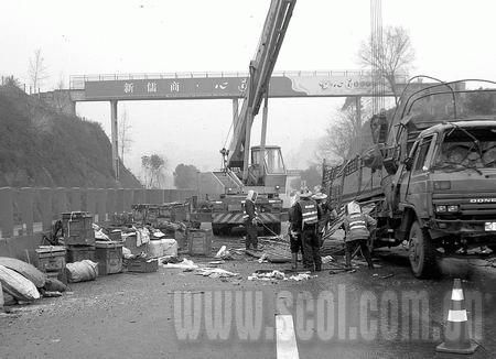 “成渝高速資中段出車禍了,鋪天蓋地的蜜蜂滿天飛,好嚇人喲!”昨日上午10時,記者驅(qū)車前往資中。當(dāng)車行至成渝高速148公里處時,被前方長長的車龍堵得無法動彈。直至12時10分,記者才挪到事發(fā)地點(diǎn)。離事發(fā)地點(diǎn)500米處,高速路變成單行道。事故現(xiàn)場,一輛車牌號為川D12695的加長大貨車,已被吊至超車道上。幾名頭戴防蜂帽的工作人員正忙于將貨車拖離現(xiàn)場。靠超車道一方地面上,堆了數(shù)十個被撞壞了的蜜蜂箱。高速路上空,全是密密麻麻滿天飛舞的蜜蜂群,“嗡嗡”之聲不絕于耳。地面上,躺著至少數(shù)十萬只蜜蜂的尸體。
