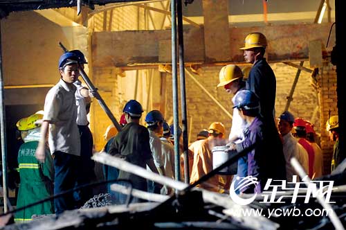 廣州一在建高樓坍塌活埋6工人 救出2人4人喪生