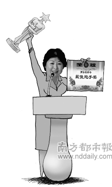 頒獎詞:兩會期間,葛委員接連出手,劍指“周老虎”,反彈“90分鐵道部”,逼問賣票制度不合理,不愧“大炮”本色。然而,一個“中華文化標志城”,卻讓葛委員從炮手頓成“炮灰”——坊間盛傳這個預計投資300億元的項目,其戰略規劃設計首席專家竟是葛劍雄。盡管葛委員一再澄清解釋,但政協委員聯名上書,網友炮轟不斷。