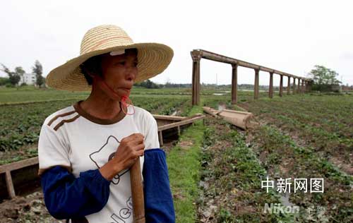 望著身后倒塌的水渠及損毀嚴重的番薯,村民傷心不已。作 者:李忠
