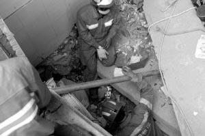 樓板一塊接著一塊,在兩層樓板之間,月月和其他5名孩子被壓在一起。沒有空間,設(shè)備無法進場!耙稽c一點地挖,想盡一切辦法營救孩子!鄙讨拒妶远ǖ卣f。
