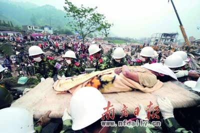 “我一定要找到家里人,死也要死到一起。”在綿陽市開出租車司機(jī)胡女士說。出事后,她開車前往北川找她的愛人。當(dāng)天下午5點(diǎn)多,她趕到時小縣城已面目全非。胡女士徒步來到愛人上班的新城區(qū),在廢墟上大聲叫著丈夫的名字。終于,丈夫有了回應(yīng):“我在這里,背上有塊大石頭!”胡女士蹲下來說:“不要怕,很快有人來救我們了。”為了讓愛人不因為恐慌和失血過多昏睡過去,胡女士跪在地上和愛人談起往事,不斷鼓勵、安慰他。半小時后,巡邏人員發(fā)現(xiàn)他們,胡的愛人獲救。而胡女士本人,則因為長時間跪在一塊碎玻璃上,被割掉一大塊肉。(作者:記者胡亞柱張蜀梅)
