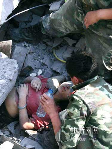 到下午5點(diǎn)鐘左右的時(shí)候,搜救官兵已經(jīng)能夠看到袁藝的頭發(fā)了,這讓所有的人不覺精神為之一振。為了使袁藝能夠保持清醒,官兵們不時(shí)的陪說話。交談中,孝順的袁藝一直在打聽父母和家人的情況,“他們肯定想不到我還活著”,袁藝話中透露著對(duì)劫后余生的無限欣喜與感動(dòng)。看到了官兵們救援的辛苦,堅(jiān)強(qiáng)的袁藝反倒不住的安慰不敢加快挖掘速度生怕碰到她傷口的官兵們:“你們加油,我也加油,我不怕疼......”