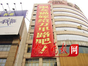 而為這次特殊的“求婚”,戴先生說他前后已經(jīng)準(zhǔn)備了一周的時(shí)間。條幅做好后,他先后在鼓樓廣場(chǎng)附近找了好幾家大廈,但由于種種原因沒有掛成,最后,當(dāng)他把想法告訴金龍大廈負(fù)責(zé)人后,馬上得到了同意。當(dāng)天上午,他和朋友等5個(gè)人花了1個(gè)半小時(shí),才把條幅掛好。而對(duì)于條幅上面為什么只注明網(wǎng)名、而不寫雙方的真實(shí)姓名,戴先生說:“我們相識(shí)于網(wǎng)絡(luò),是通過網(wǎng)名相戀的。再者,求婚是對(duì)女友一個(gè)人,只要她心知肚明就行了。”