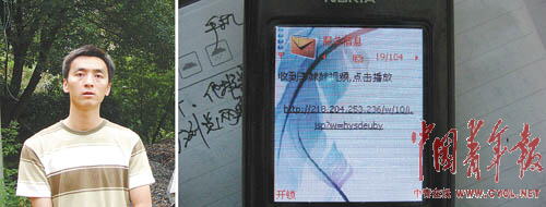 陳回鄉(xiāng)后,父親向他倒苦水:手機中連續(xù)收到100多條短信,里面不少有黃色圖片和挑逗性語句,為此他多掏了不少冤枉錢。而且,這類短信似乎沒有停止的跡象,最多一天甚至收到30多條。