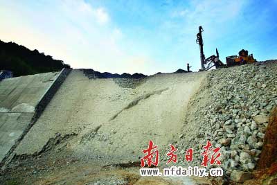 到昨天傍晚發稿時止,廣州市防總已按省防總要求,組織爆破公司14名工人,1臺大型鉆機、4臺小型鉆機已到達現場(見上圖,王亮攝)。目前施工通道已經修復,正在做好爆破前的準備工作。目前,廣東省防總以及市現場督導組等有關專家,已經進入現場與爆破公司研究分析具體爆破方案,督導爆破方案實施。