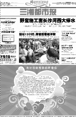 “哇,這可是封昂貴的情書! 平常很少看廣告的小余發(fā)現(xiàn),30日的《三湘都市報(bào)》有點(diǎn)不同,頭版用半個版的篇幅刊登了一封《我比你能想象的更愛你》,深情款款的文字配上溫馨淡雅的心形圖案,表達(dá)了男主角“帥”對女主角“盈”“處在崩潰的邊緣”的思念之情。