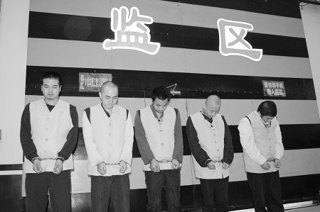 昨日,記者在未央?yún)^(qū)看守所見到了5名嫌犯。嫌犯王某對記者說,“對不起受害人。大家千萬不要像我一樣,要走正道賺錢!蹦壳,王某等5名嫌犯已被警方刑拘,而在逃的仝某警方正在追捕中。警方希望知情者積極提供破案線索。舉報電話:029—86713172。(文/圖 記者 張小乙 實習生 王婷 袁勝娟)