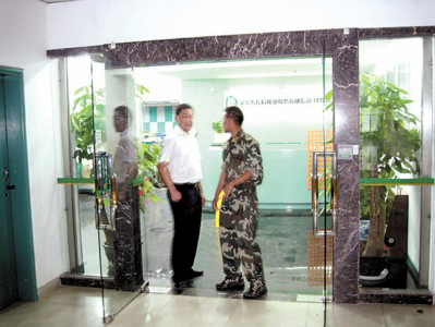 事發(fā)地點(diǎn)位于深圳市福田區(qū)蓮花街道蓮花北村富蓮大廈三樓的某物業(yè)公司。昨日中午,記者接報趕到時,公司玻璃大門已經(jīng)上鎖,4名穿迷彩服的男子守在門口,空氣中充滿了焦糊的汽油味。玻璃門內(nèi)一片漆黑,未開電燈。該公司一員工稱,他上午沒在公司,后聽同事說是老員工鐘先生在公司內(nèi)潑汽油,并用打火機(jī)點(diǎn)燃,燒傷了自己和一名吳姓經(jīng)理。