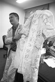 此外,川大華西醫院還將近百件抗震救災醫療隊的服裝等進行了捐贈,其中包括來自黑龍江、江西、北京等20多個省市。廖志林表示,地震后有30多個醫療隊進駐華西醫院醫治傷員,這次從全國各地郵寄而來的醫療服,是通過書信號召他們捐贈出來的,希望建川博物館能全面展現抗震救災過程中各方面眾志成城的場景,目前已收集完成了20多個醫療隊的相關物品。“一件文物一個故事,我們在做地震博物館的時候更注重收藏感動人心的背后故事。”何新勇表示,薛梟的故事讓無數的中國人記住了他,博物館收藏其簽名的可樂罐主要是希望為參觀者呈現一個不可磨滅的記憶,就像給妻子最后尊嚴的摩托車、為搭板房勞累而犧牲的武文斌的雕像一樣。博物館一直想尋找的是那些飽含故事的實物,“電視上不是說,有位媽媽為保護自己的孩子不幸遇難,她在手機上留下了‘親愛的寶貝,如果你還活著,請記住媽媽愛你’的短信,但苦苦尋覓這部手機,都沒有結果。讓我們非常遺憾。”