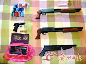據了解,警方除了繳獲大量制毒工具和原料,還在秦某等犯罪嫌疑人的住處查獲仿六四式手槍和霰彈槍等各種槍支共7支,子彈47發。由于警方縝密部署,果斷出擊,這個持有7支槍支的武裝制販毒團伙被警方不費一槍一彈破獲了。