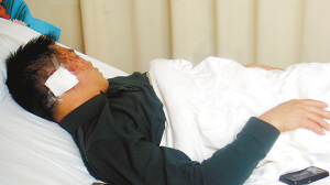 11月6日13時,記者在蘭州軍區(qū)烏魯木齊總醫(yī)院神經(jīng)外科病房里,見到了躺在病床上的魏宗平。他的頭部血跡斑斑,右耳縫了8針用紗布包扎著,頭部還有三四道明顯的刀痕,并且縫了十來針,表情顯得異常痛苦。