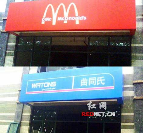 山寨版的麥當勞和屈臣氏店鋪。網友 攝