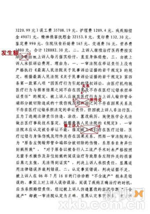 記者在判決書掃描件中的確發(fā)現(xiàn)不少筆誤,比如把“導致”寫成“導治”、“人工流產”寫成“工人流產”、“附件炎”寫成“附件驗”和“附件鑒”、“被上訴人”寫成“被上訴們”、“認為”寫成“真?zhèn)巍保熬懿椤睂懗伞皳?jù)查”、“整理”寫成“整體”、“人流史”寫成“人流使”等。