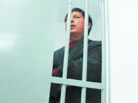 出警的何警官向記者描述當時的情況:“我們出警人員剛回到派出所后,又接到110指揮中心的出警指令。我們又火速趕到縣政府大門口,看見還是這個村官又返回到縣政府門口鬧事。他用拳打傷了與他同行的一個長輩,又去搬被他整壞了的縣政府的自動門。我們只好依法將他帶離現場,他瘋狂地將兩位民警的手咬傷。上車后,他還踢掉了警車門,后來在派出所的留置室他又踢爛了鐵門!