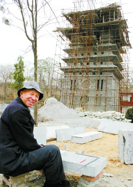 “今年年底,投資200多萬元的鐘鼓樓即將竣工。目前,洞林寺的恢復重建資金已有近千萬元。你看大雄寶殿上的那個頂的造型是不是別具一格,這是由方丈釋永信設計的……”解說中,洞林寺法師釋延爍一臉幸福。