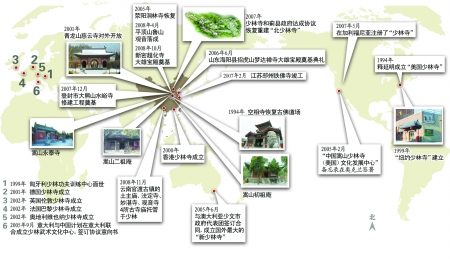 就像在世界各地都能吃到麥當勞一樣,如今,在全球各地也能輕松地學到少林功夫。盡管少林寺方丈釋永信曾對媒體大聲辯解:我們不是麥當勞,不愿意少林功夫商業化。但這座千年古剎分院卻遍布全球,已經達到20多家,而且擴張的勢頭,正加速前進。