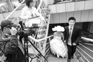 苗若木正在校園內(nèi)拍攝山寨版“桃花運(yùn)” 本報(bào)記者 吳小川 攝