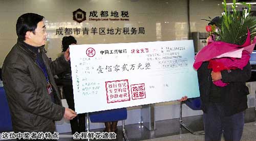 張先生經過一番“喬裝”打扮后,“遮遮掩掩”地來到青羊區地稅局,領取成都市有獎發票推行以來的最高獎金——102萬元。