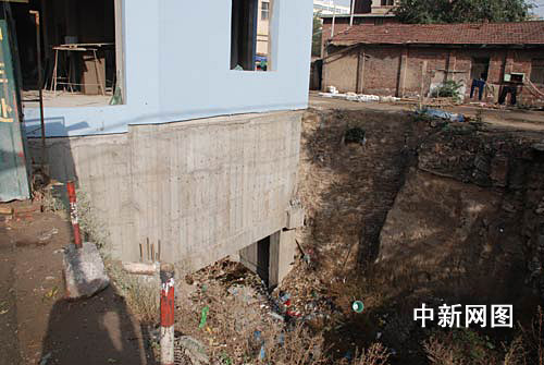 1月5日出版的《甘肅日報》報道稱,同樣,在西固公園前面,一處長約上千米、兩層高的鋪面也早已將排洪溝完全覆蓋。沿著這些鋪面向西走,還可以看到這些房屋下立著一根根的地基柱,下面正是排洪溝。