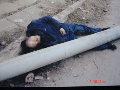 5日下午4時,汝州當地氣溫低于零下5度。中國網通汝州分公司門外被駐足的市民團團圍住。一名自稱姓任(音),是網通公司警務室工作人員的中年男子叉腰站在門口臺階上。他的身后,死者魯偉政8歲的兒子魯志恒和剛滿一歲的妹妹依偎在媽媽懷里,驚恐而無助的望著他。一番爭論后,任姓男子緩緩點燃一根香煙,指著身后席地而坐的家屬大聲叫道:“你們這樣做是違法的!”“再吵把你們全抓起來!”任姓男子的說法立即引起圍觀群眾的強烈不滿,現場的爭吵聲將原本躺在媽媽懷中熟睡的女嬰嚇得大哭起來。