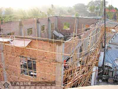發(fā)生坍塌的樓房位于陸川縣良田收費(fèi)站附近,是良田公路養(yǎng)護(hù)所的一棟在建機(jī)械倉(cāng)庫(kù)。該樓房占地面積有250平方米左右,高7米,只有一層,公路養(yǎng)護(hù)所打算建成后,用來(lái)存放養(yǎng)護(hù)公路的車輛、工具等。發(fā)生事故前,該樓房已快竣工,正準(zhǔn)備封頂收尾。