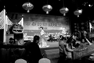 昨天下午5點左右,老孟一反日前對媒體三緘其口、“神秘化”的姿態,通知各家媒體,山寨春晚在朝陽區勝古莊社區冶金研究所內,首次帶妝彩排。記者趕到后看到,山寨春晚現場布置得有模有樣——前后兩個舞臺,多角度燈光和完善的音響設備,5機位拍攝全景、特寫和觀眾表情,甚至還有一架搖臂多角度拍攝演員,儼然是一場專業水平的晚會。