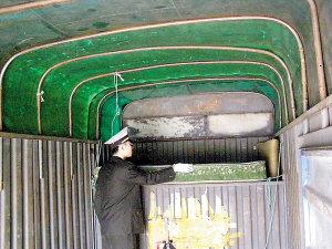 執(zhí)法人員進(jìn)一步檢查,驚奇地發(fā)現(xiàn)該貨車車廂改裝成了一個(gè)小鐵屋,車廂內(nèi)設(shè)有3張席夢(mèng)思改裝成的6個(gè)臥鋪?zhàn)弧?