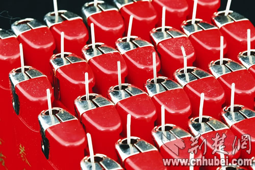夜市上有三四家賣火機的攤位,其中一個攤主是位平頭男子!袄习逵袥]有這樣的火機?”記者向平頭男子展示了“麻果火機”,他拿著火機把玩了一下,笑著說,這就是普通火機改造的,將火嘴延長,小作坊生產,需要專門的“班子”。
