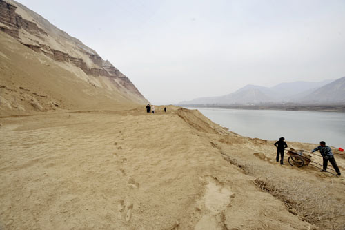 “損失很大,幸虧沒有人員傷亡。”現場指揮土方清理的鹽鍋峽鎮副鎮長孔繼業告訴記者,滑坡導致山下的鹽北路近30米長的路面被毀,同時,大量黃土沖入黃河后,河水迅速上漲,導致一河之隔的上車村62畝土地被淹沒,其中冬麥26畝,約2.2畝耕地今年無法耕種,毀壞棗樹83棵,造成經濟損失17.3萬元。