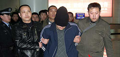 據(jù)了解,3月13日晚上,由“3.08”特大搶劫殺人案專(zhuān)案指揮部派遣的13名辦案民警,乘坐火車(chē)趕赴滿(mǎn)洲里。14日上午,民警們從滿(mǎn)洲里公安局看守所將這3名犯罪嫌疑人押出,乘坐飛機(jī)押解回呼。當(dāng)日16時(shí)許,記者來(lái)到呼和浩特白塔國(guó)際機(jī)場(chǎng)。記者注意到,3名犯罪嫌疑人的頭上都被蒙上了頭套,無(wú)法看出他們的長(zhǎng)相。這3人的個(gè)子并不高,其中1人比較胖,另兩人都較瘦小,能夠看得出他們的年齡并不大。雖然他們打扮成學(xué)生模樣,但是他們的穿著還是引起了大家關(guān)注,因?yàn)樗麄兌忌碇鴯湫碌陌⒌线_(dá)斯牌的上衣和褲子,腳上穿的也是阿迪達(dá)斯牌的鞋子。據(jù)民警講,這衣服是他們逃亡到北京后用搶劫到手的錢(qián)購(gòu)買(mǎi)的。