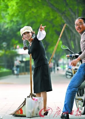 近日,有網友在天涯論壇上發帖,感嘆她是“最美麗、最時尚的清潔工”。