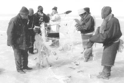 但是,在冬季,村民們可以騎著摩托車到冰面上收繳漁網(wǎng),如今湖面已經(jīng)慢慢解凍,收網(wǎng)變得越來越危險(xiǎn)。村民們看著湖面上千張的漁網(wǎng),真的只有無奈地“望網(wǎng)興嘆”了。用他們的話說,“每天不吃飯,收都收不完”。