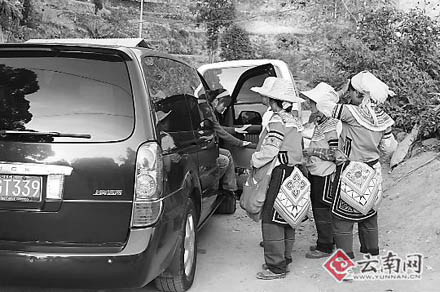 記者發現,在老虎嘴景點的公路邊上,每天都有許多的女童在向游客纏售梯田明信片。只要游客一下車,她們立馬就圍上去,有的可以纏上半個小時,如果有一游客買了其中一人的,其他女童就會立即圍上來纏賣,弄得游客的心情極不愉快。