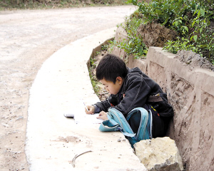 山里娃公路邊寫作業(yè)