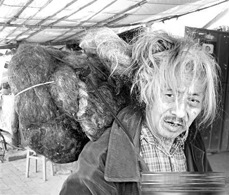 昨日上午,遂寧市靈泉寺坡頂,一個奇特老人正在采藥:他背上背著一個脹鼓鼓的黑布袋,這布袋同老人的頭發緊緊相連。布袋里裝的是什么?老人挖藥材時為什么不卸下來?布袋為什么同他的頭發緊緊相連?在好奇的旁人強烈要求下,老人打開布袋:原來,布袋里裝的就是老人自己的、用繩子捆得結結實實的頭發。